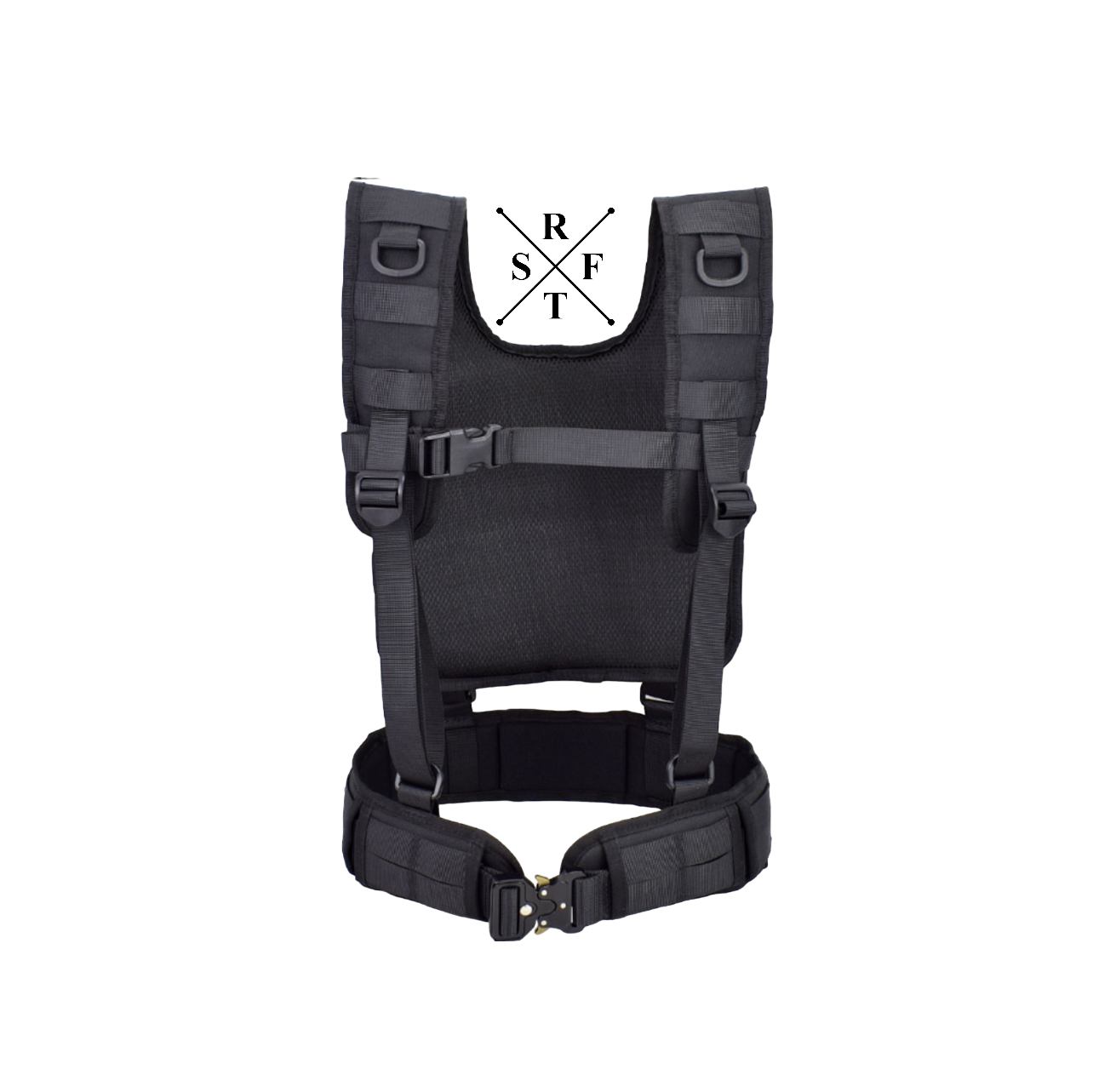 - Das Geschirr verfügt neben dem Molle Belt über eine breite Rückenplatte mit Molle Schlaufen.